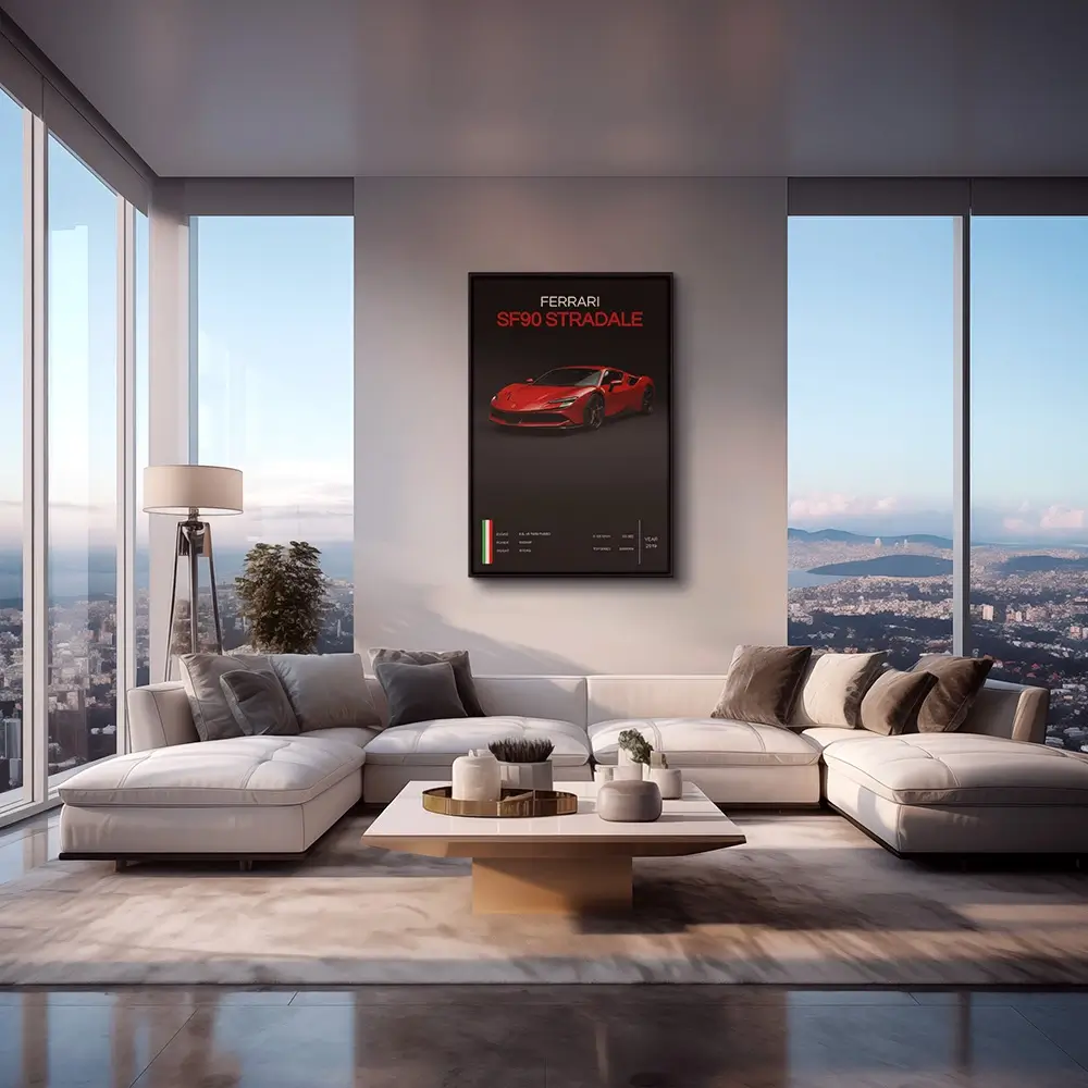 La « Ferrari SF90 Stradale » reflète l’âme italienne et la quête de perfection technique. Sa robe rouge éclatante évoque vitesse et raffinement. Une pièce idéale pour les intérieurs modernes et audacieux.