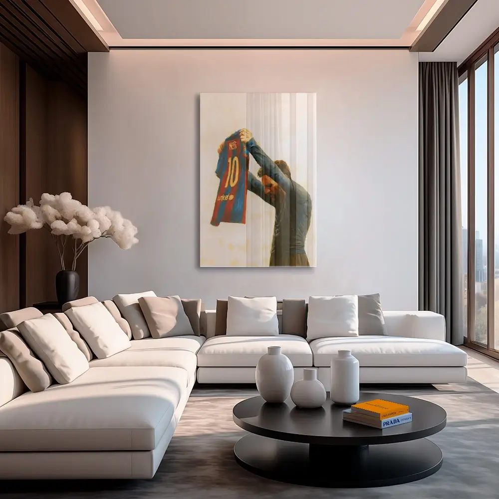 Le « Messi Light » célèbre un moment d’émotion et de gloire, sublimé par des tons clairs et chaleureux. Une œuvre qui inspire et dynamise votre espace.