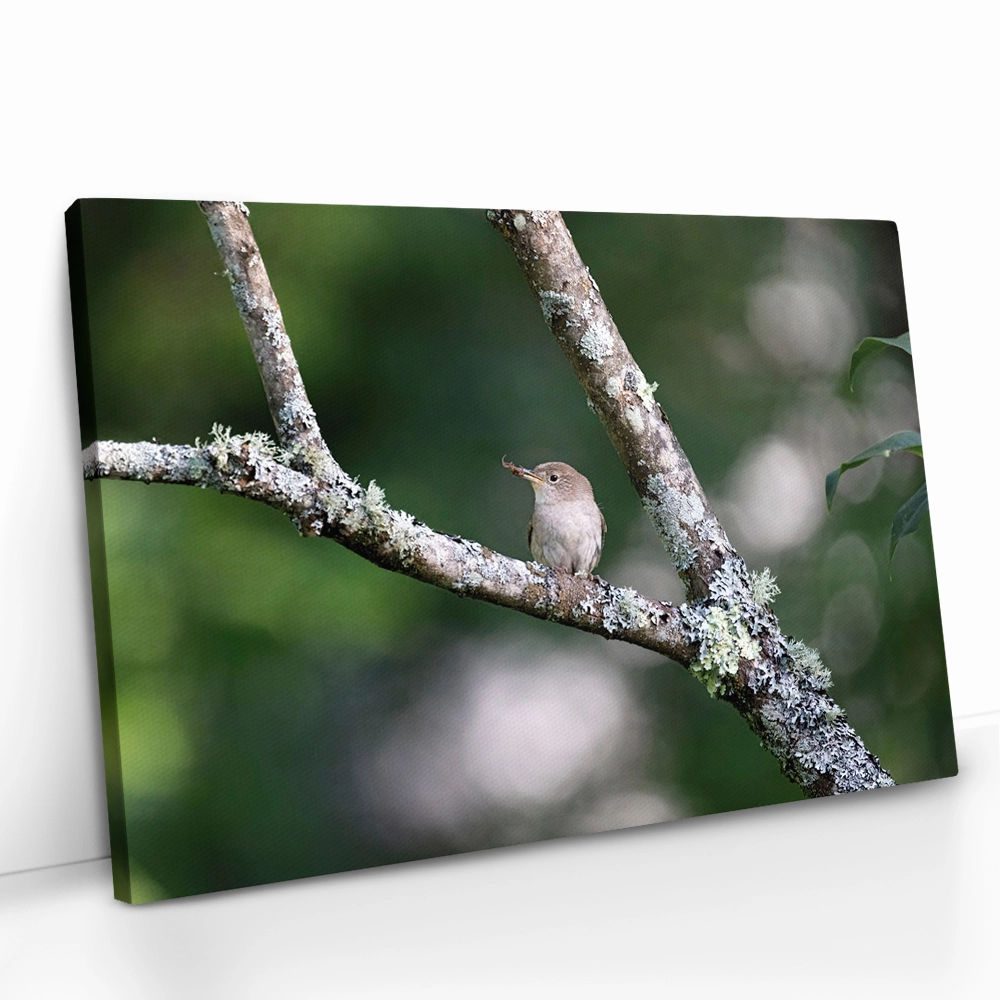 Un troglodyte s’immobilise sur une branche piquetée de lichen, un insecte au bec. La forêt se dissout en cercles feutrés, offrant une scène au perchoir. Les plumes s’accordent à l’écorce au point que l’oiseau semble presque sculpté dedans. La chasse s’achève pour l’instant et le sous-bois retrouve son silence.