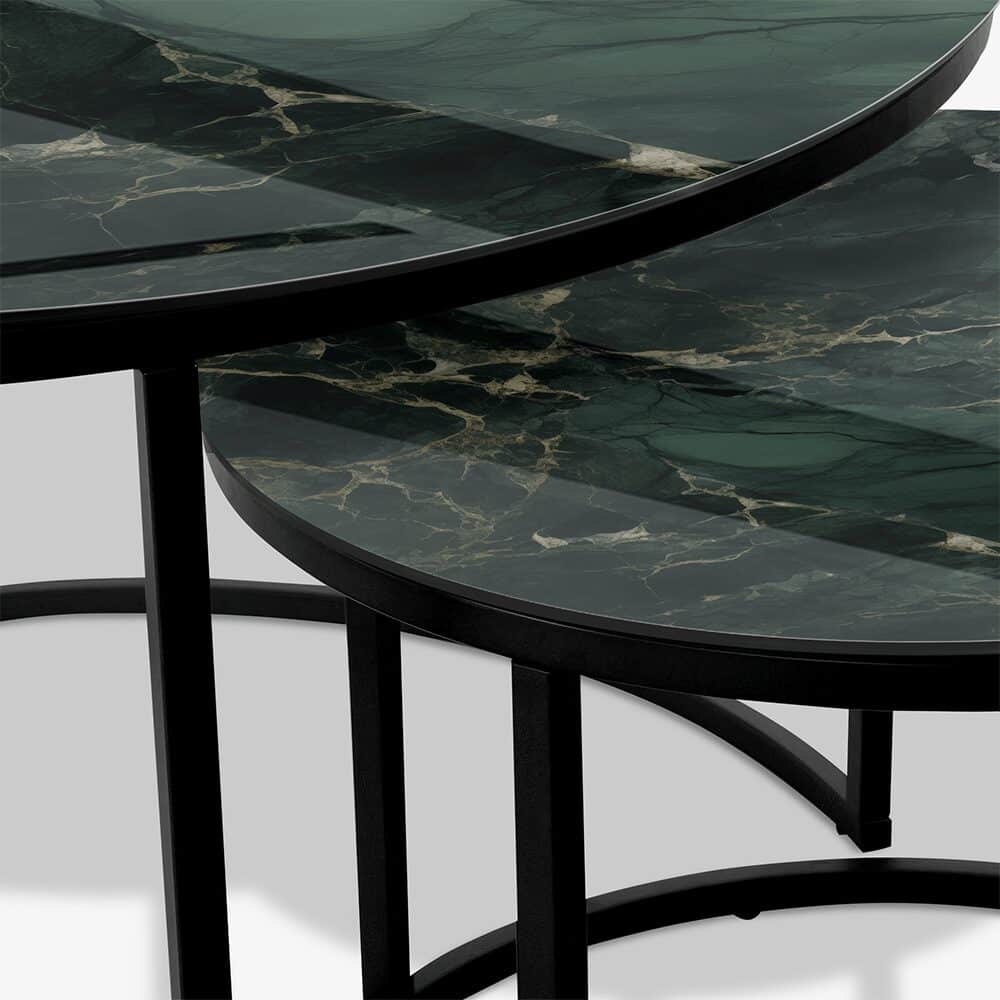 Chic et élégant ! Cet ensemble de deux tables de salon, avec sa structure en acier inoxydable et son épais panneau en verre effet marbre, est une pièce élégante de la collection exclusive Wallfield. Ses lignes épurées et son motif marbré veiné apparent lui confèrent un style raffiné. Utilisez-les comme table basse, support pour plantes ou pour mettre en valeur vos plus belles pièces de décoration. Ces tables offrent un confort intérieur luxueux.