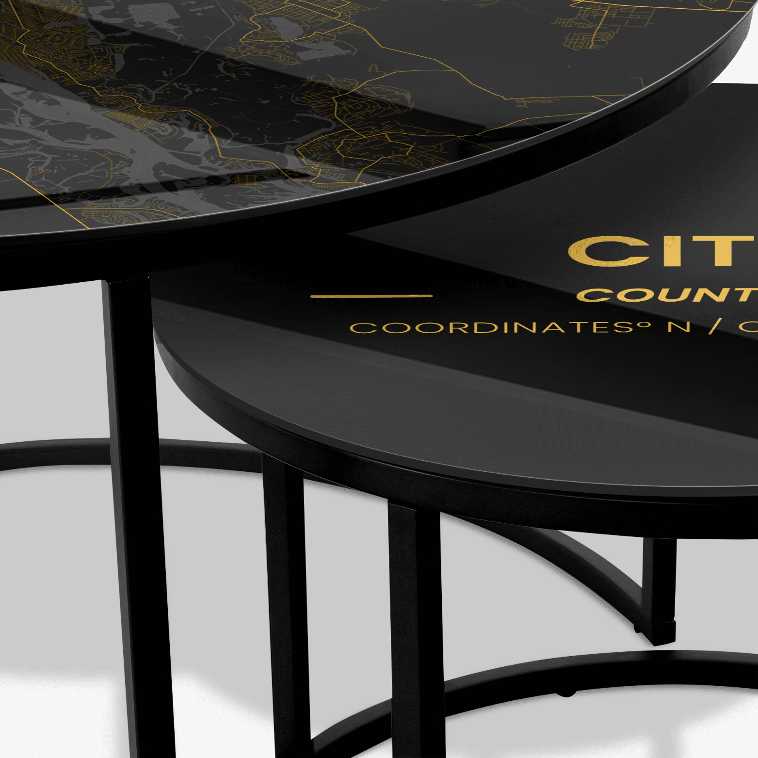 Table basse noire – Personnalisée Golden City Map